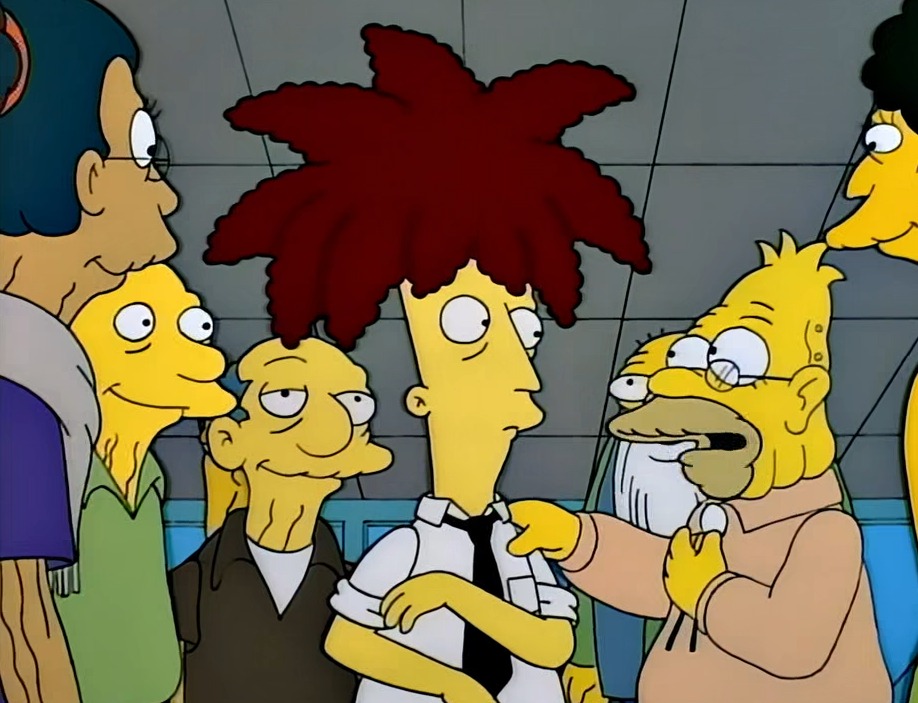 "Die haben Krusty auf Deutsch im Fernsehen." "Heil heil!!" "Ach du lieber, Krusty spritzen der Gaswasser!" "Jaja, Krusty spritzen der Gaswasser huhähähä." "Was für eine schöne Sprache."