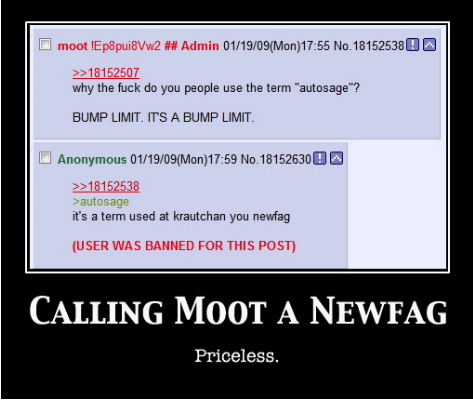 Bilderbretter sind dafür bekannt, dass auf ihnen Makros und Mems entstehen, aber auf Kohl wird man dafür gebannt, wenn man solches pfostiert.