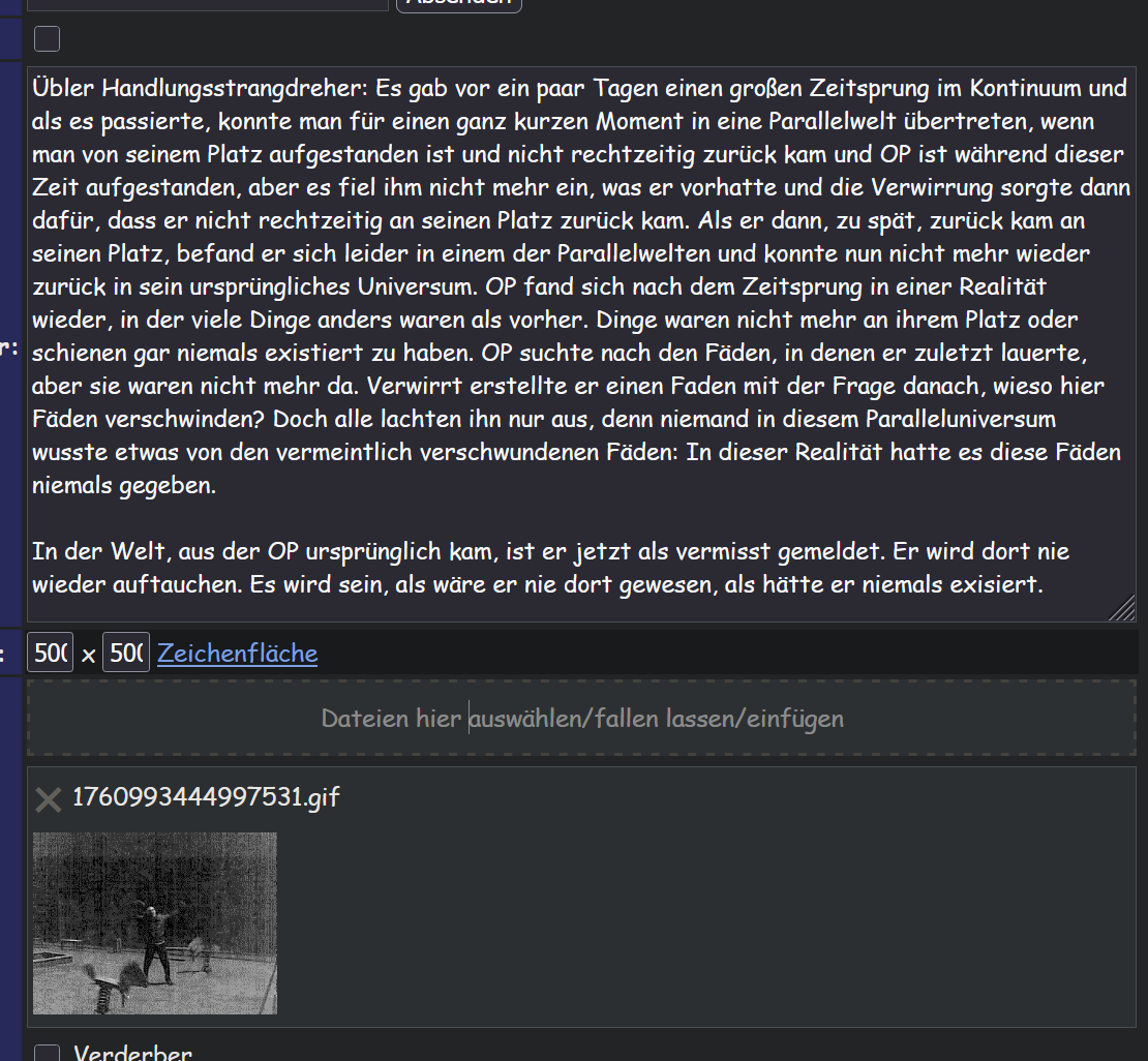 >>19742 Nicht gelöscht, sondern in den /m/üll getan. Wirkte wie ein liebloser, dahingeschissener Einzeiler-Müllfaden und nicht wie ein ernsthafter Versuch, dieses Teil zu besprechen. Kannst es gern noch mal probieren.