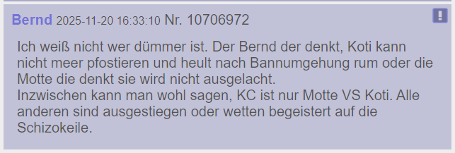 Bernd hat mal dieses Bild pfostiert weil es lustig ist und wurde bis Ende 2026 baniert.
