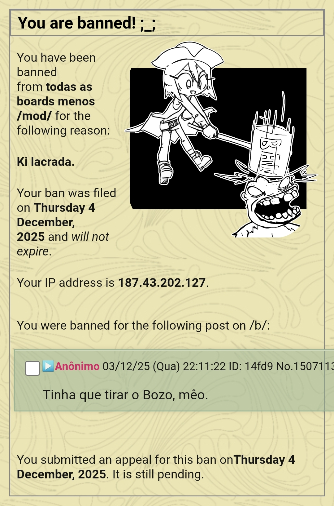 Não sei o intuito de banir VPN/Tor/Proxy, o chan está estranho demais, não faz sentido algum eles terem banido todo mundo e deixar aquilo morrer assim, não sei porque levam tão a sério aquilo.