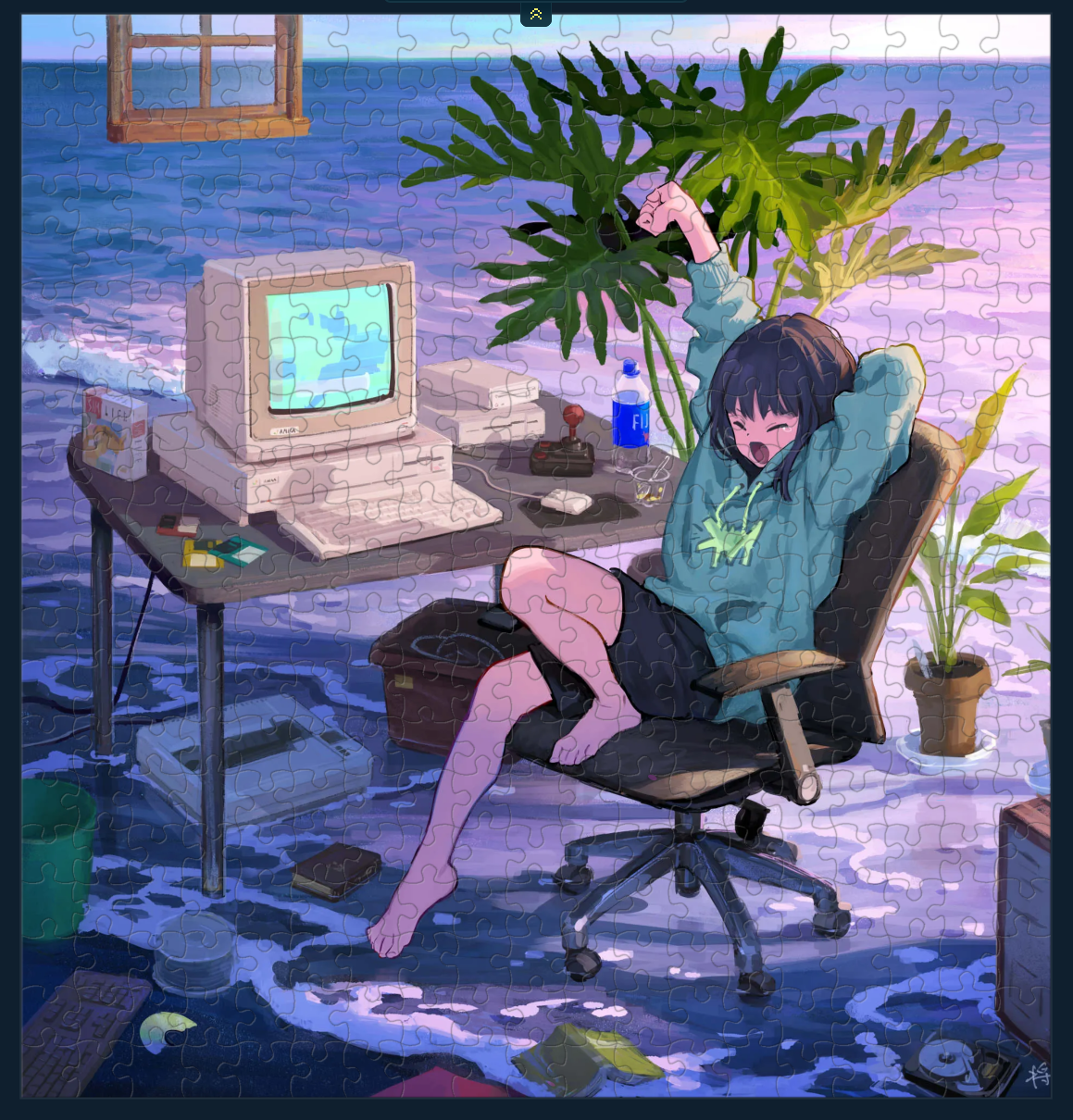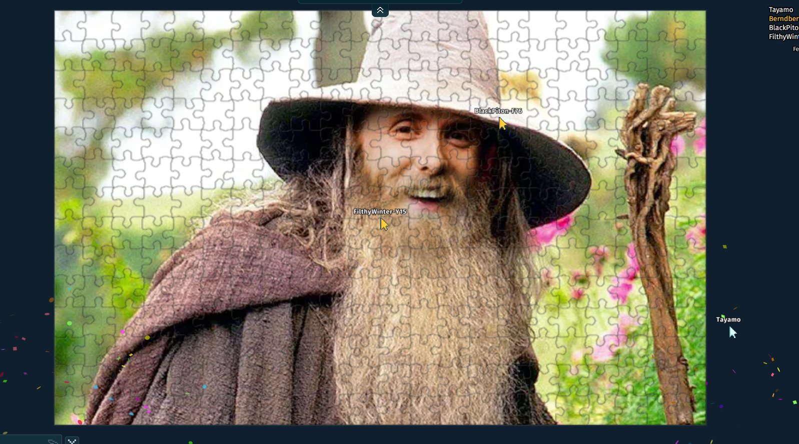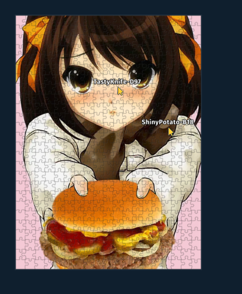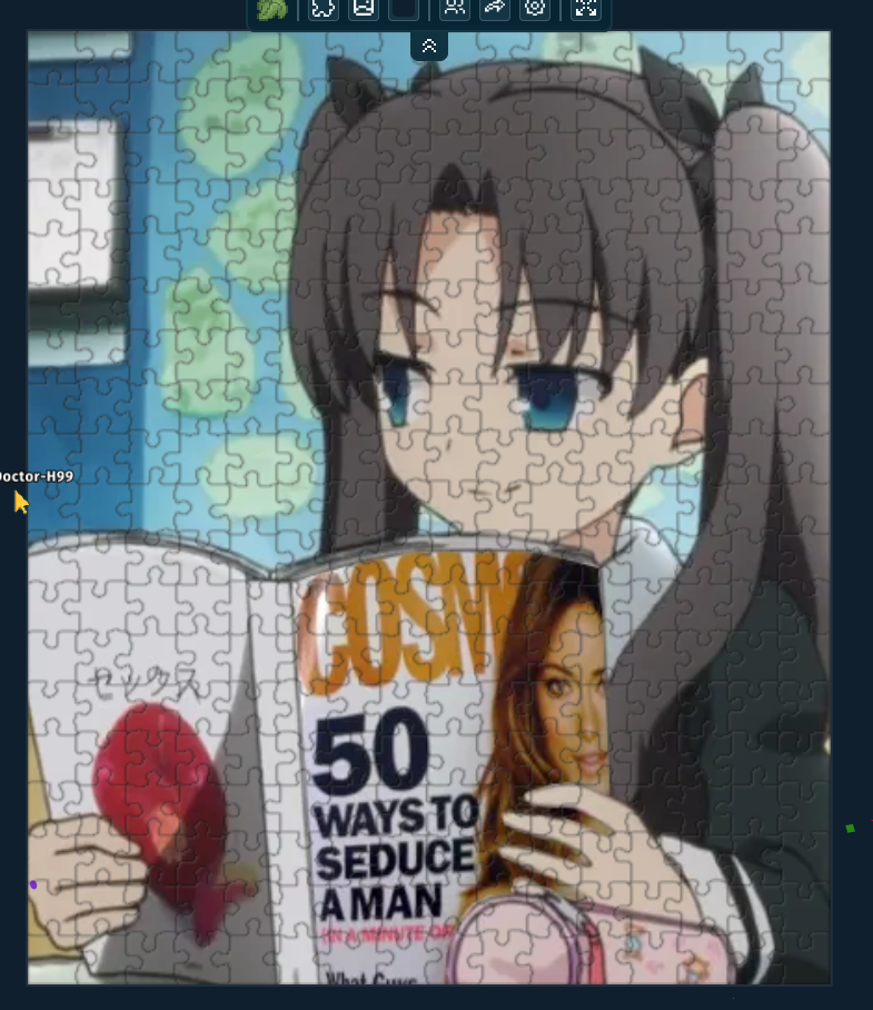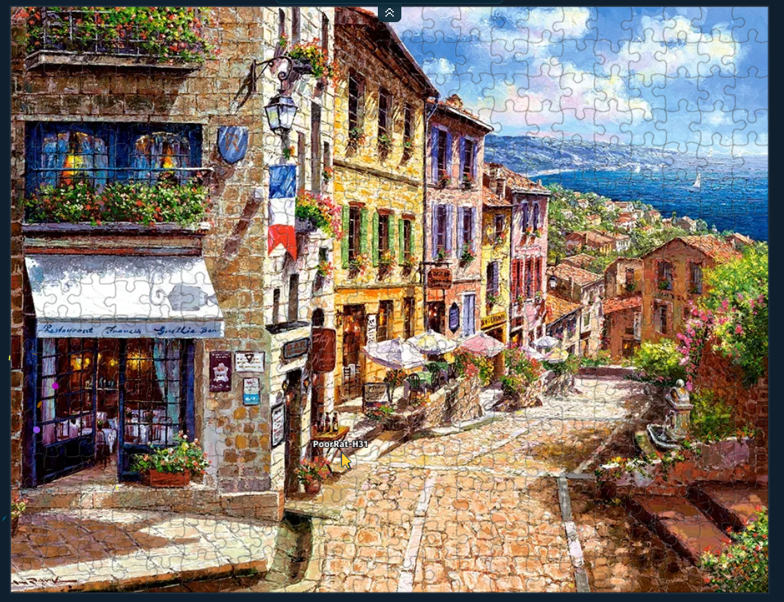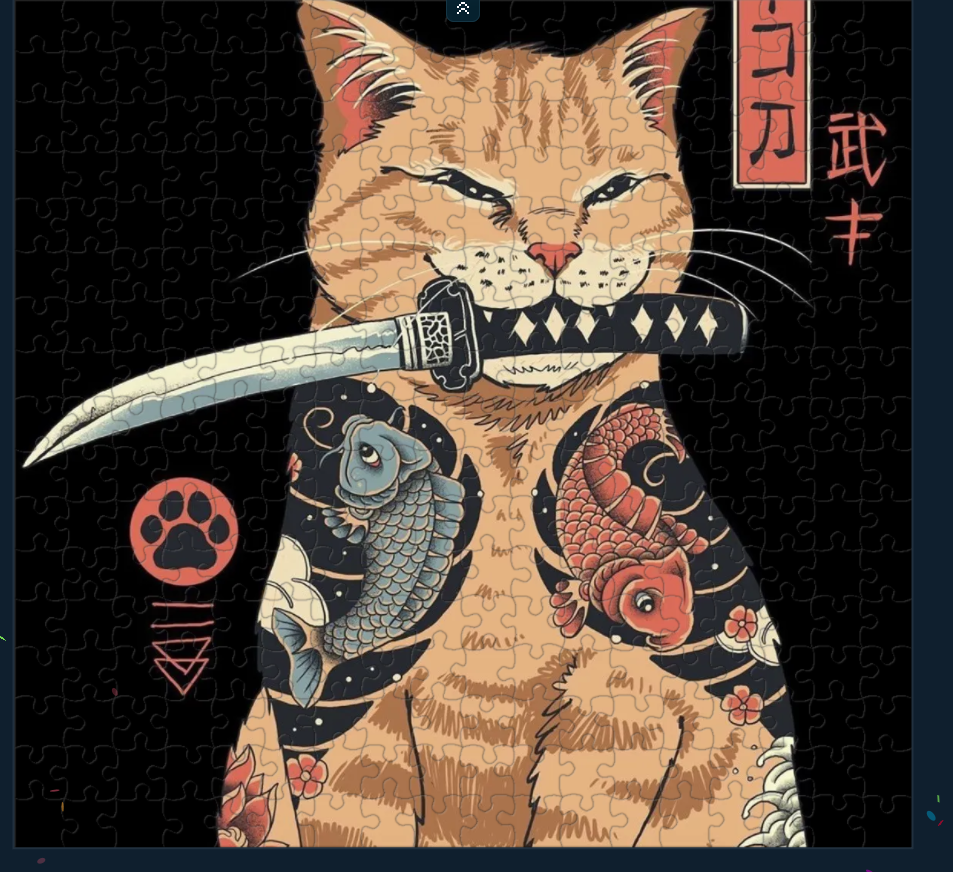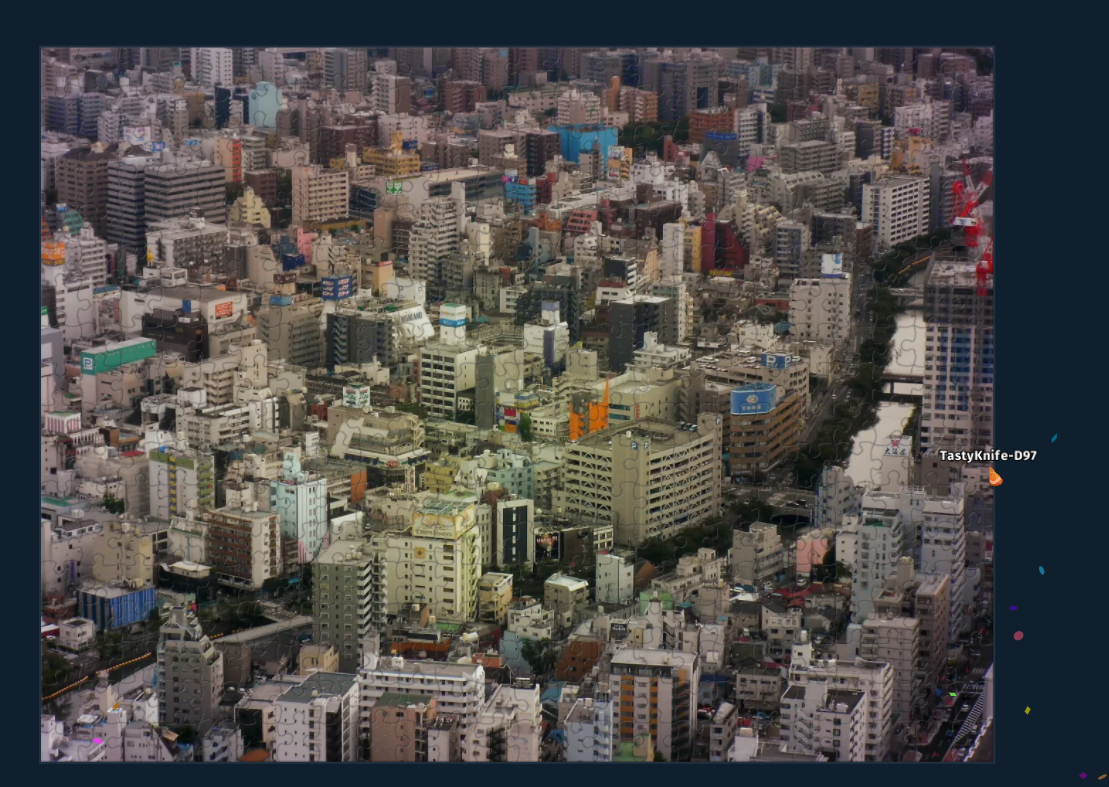 Can we switch to another puzzling site? Tanggle does not allow rectangular selection. I mean it does but >Max 5 pieces, subscribe for more. and I am not subscribing. Rotating pieces is also implemented in a sub-par way (click with middle button), so apparently no cw or ccw hotkey. I propose instead that we use jiggie.fun or jigsawexplorer.com
