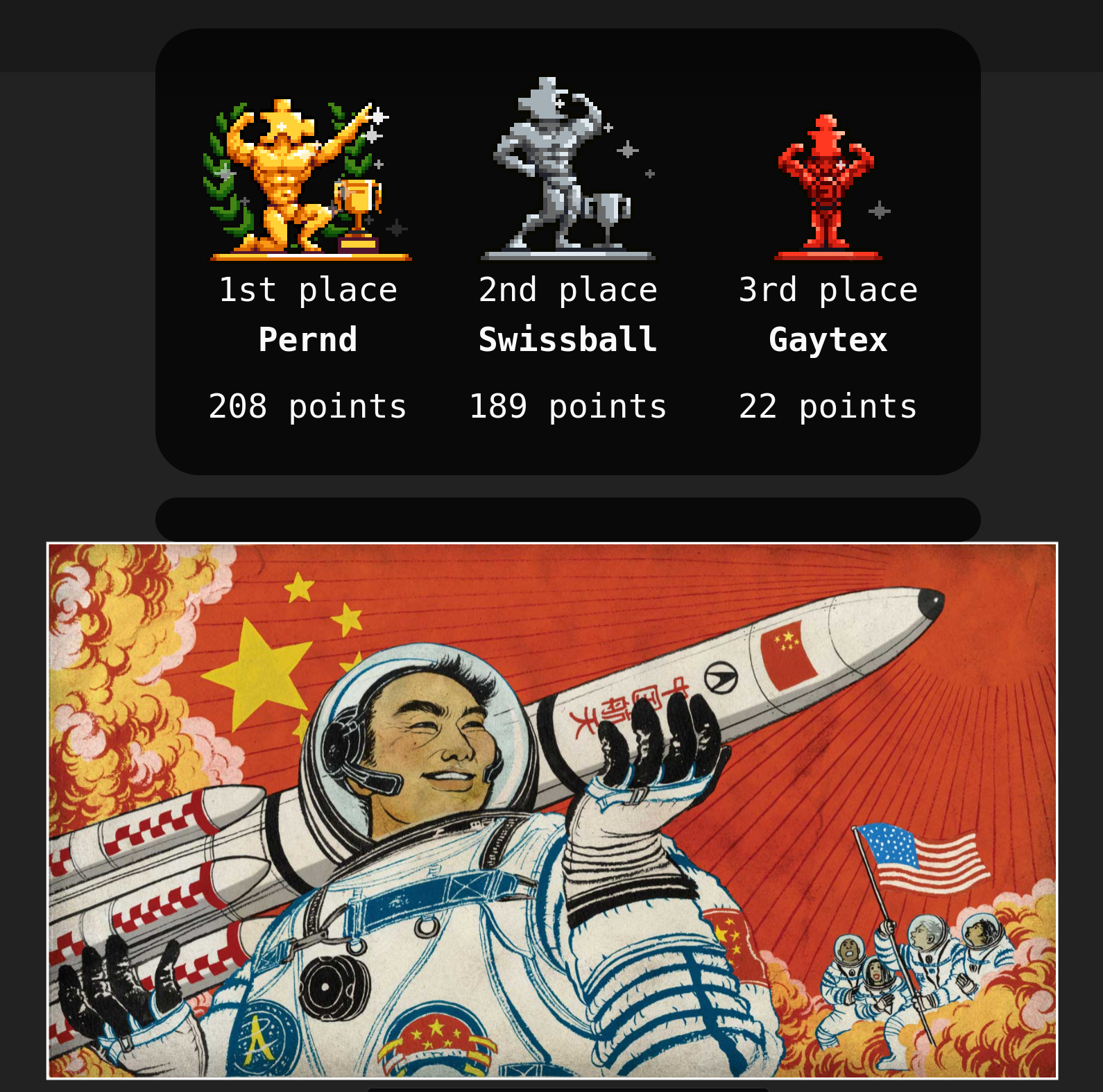 >>22342 jiggie.fun is actually bestest because it has the jukebox feature. You get some points when you place a piece and you can redeem them to play some music from an arbitrary youtube link. Killer feature.