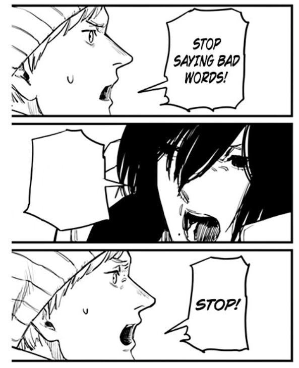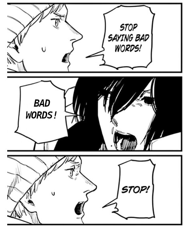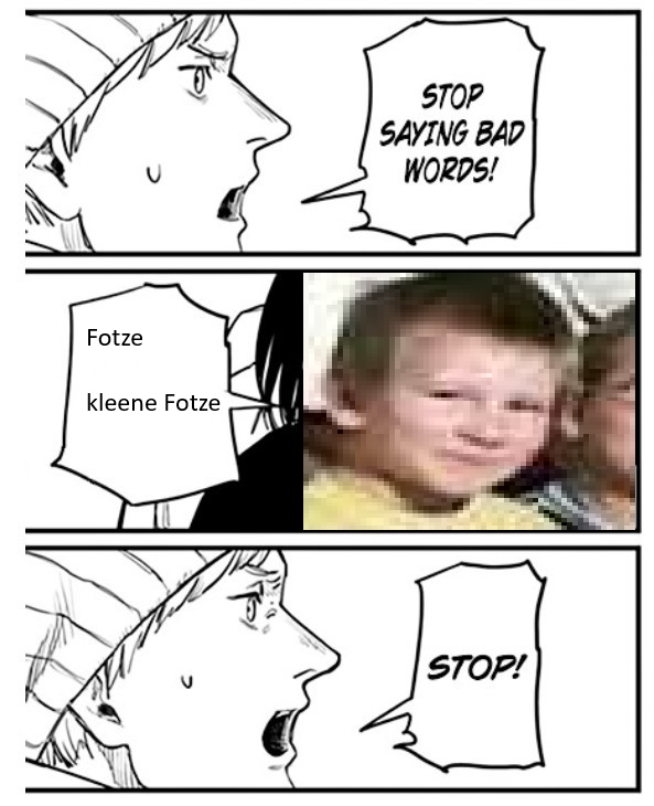 >>472 Seit ich heute Mittag diesen Pfosten gesehen habe, habe ich Bild relatierte Editierung von mir in meinem Lauerordner gesucht, von der ich genau wusste, dass ich sie habe. Jetzt erst habe ich sie gefunden. Das ist aus dem Manga "Fire Punch", im Original sagt sie glaube ich nur "Penis". Selbstsäge für seichte Ernstsuppe.